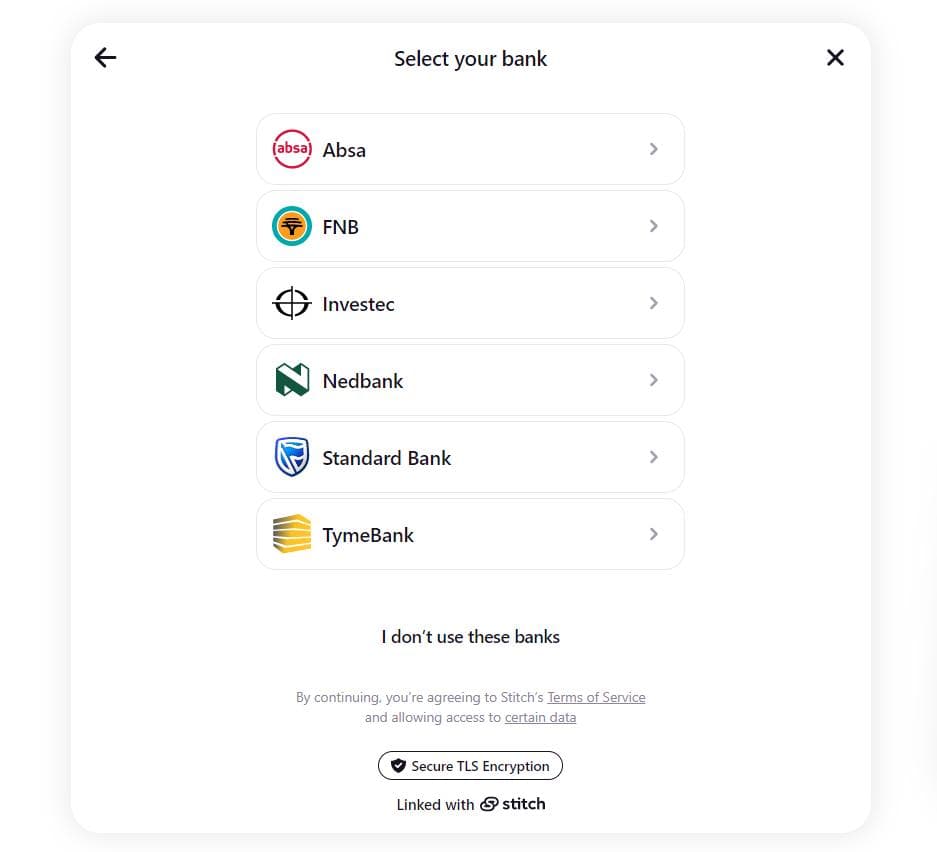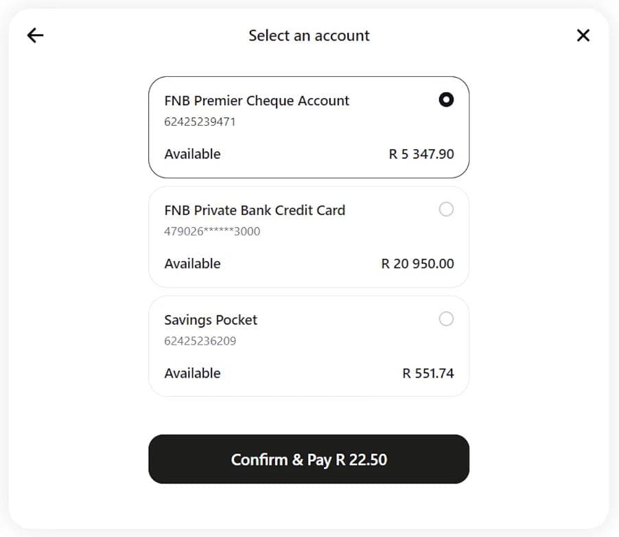 - Accept EFTs from all major South African banks including Nedbank, ABSA, Standard Bank and Investec.
